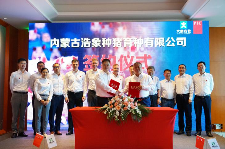 8月18日,皮埃西(张家港)种猪改良有限公司(以下简称“PIC”)与山西新大象养殖股份有限公司(以下简称“山西新大象”)合资组建内蒙古浩象种猪育种有限公司(以下简称“内蒙古浩象”)的签约仪式在上海成功举行。该场投产后将成为PIC亚洲区的精英种猪场,有力助推山西省、内蒙古自治区乃至全国的种猪基因改良和养猪业发展,为非洲猪瘟背景下的养猪业稳产保供提供优质种源支持。据悉,该场设计规模为3200头曾祖代种猪,另有一个200头公猪站,初始建群种猪计划由国外进口,计划于2021年6月建成投产。