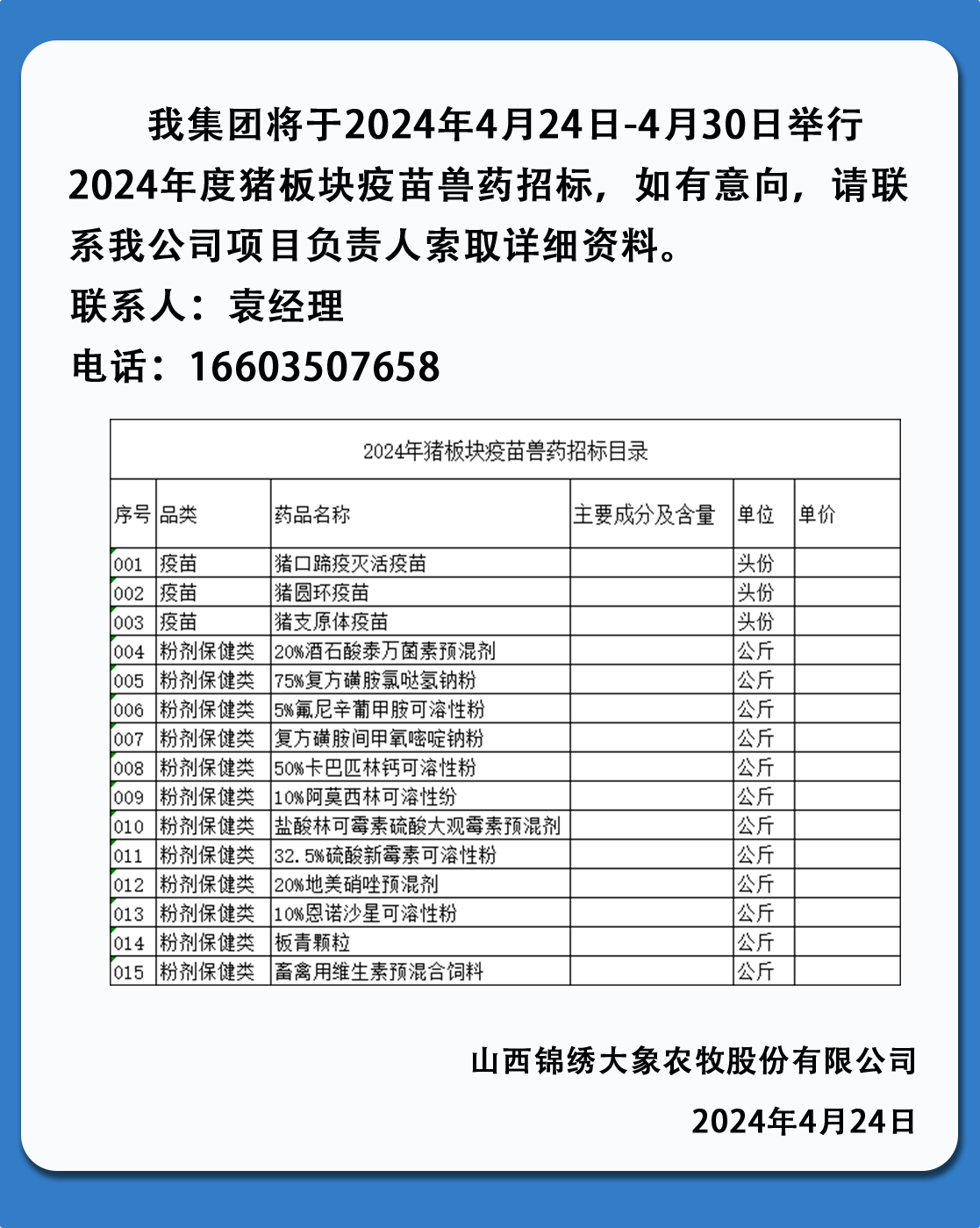 山西星空网官方站入口_星空(中国),农牧股份有限公司2024年猪板块疫苗兽药招标